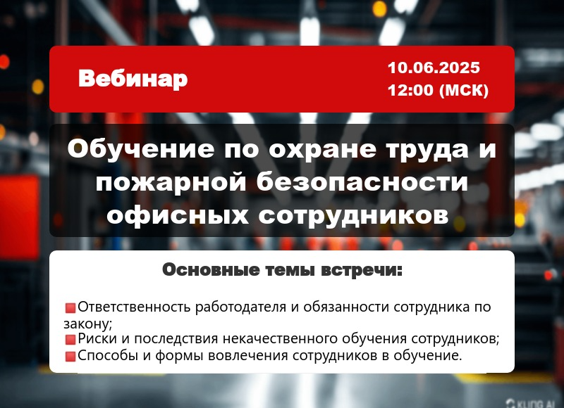 В рамках нашего ТГ-Канала "PRO Охрану труда" состоялся вебинар на тему "Обучение по охране труда и пожарной безопасности офисных сотрудников". В вебинаре принял участие приглашенный спикер, с опытом работы в ОТ более 15 лет.